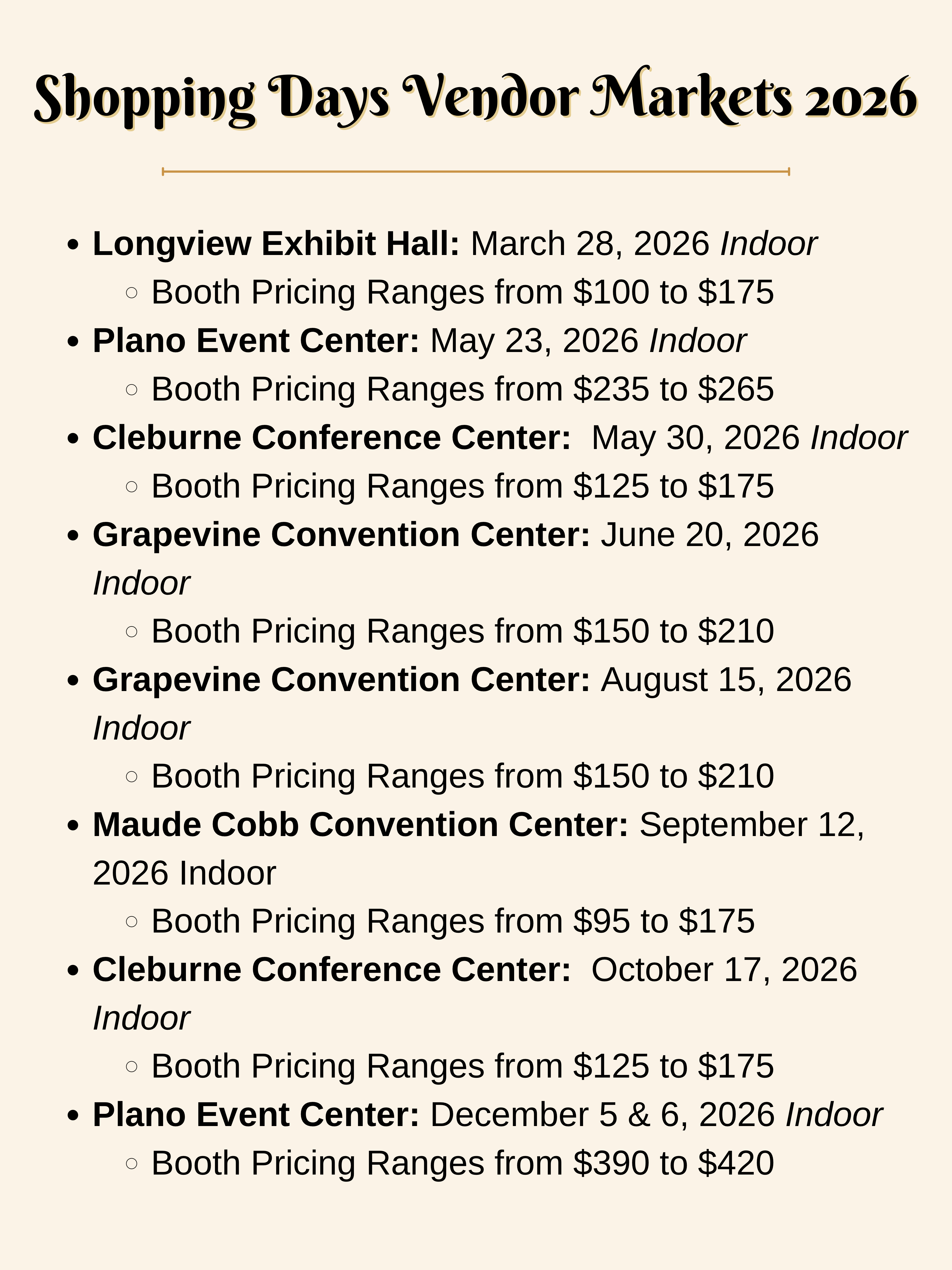 Registrations for Vendors for the 2026 Vendor Markets open on September 1!